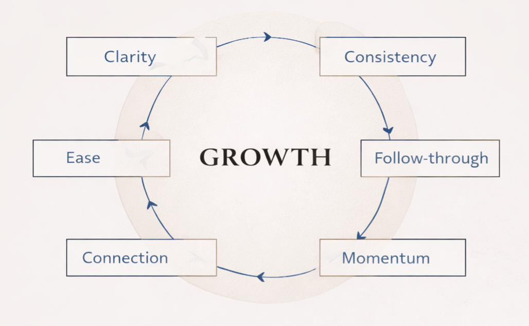 It sits across clarity, consistency, ease, connection, follow-through, and momentum.